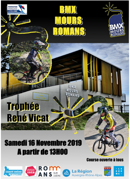 16/11/2019 – 1er Trophée René VICAT – Mours Par RémyDans CompétitionPosté 24 octobre 2019 Venez rouler sur la piste de Mours le 16 Novembre 2019, à l’occasion du premier trophée René Vicat. Télécharger Pour les inscriptions, merci de prendre contact avec Joëlle par mail: ubr.contacts@gmail.com